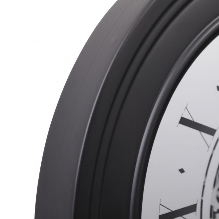 Sleek and striking, this wall clock features a mirrored silver face paired with an antique rustic metal frame. Exposed rotating gears and cut-out details create a captivating display, blending industrial charm with modern elegance. The minimalist glass cover, marked with essential time increments, protects the intricate inner mechanics. A bold statement piece for any contemporary space.
