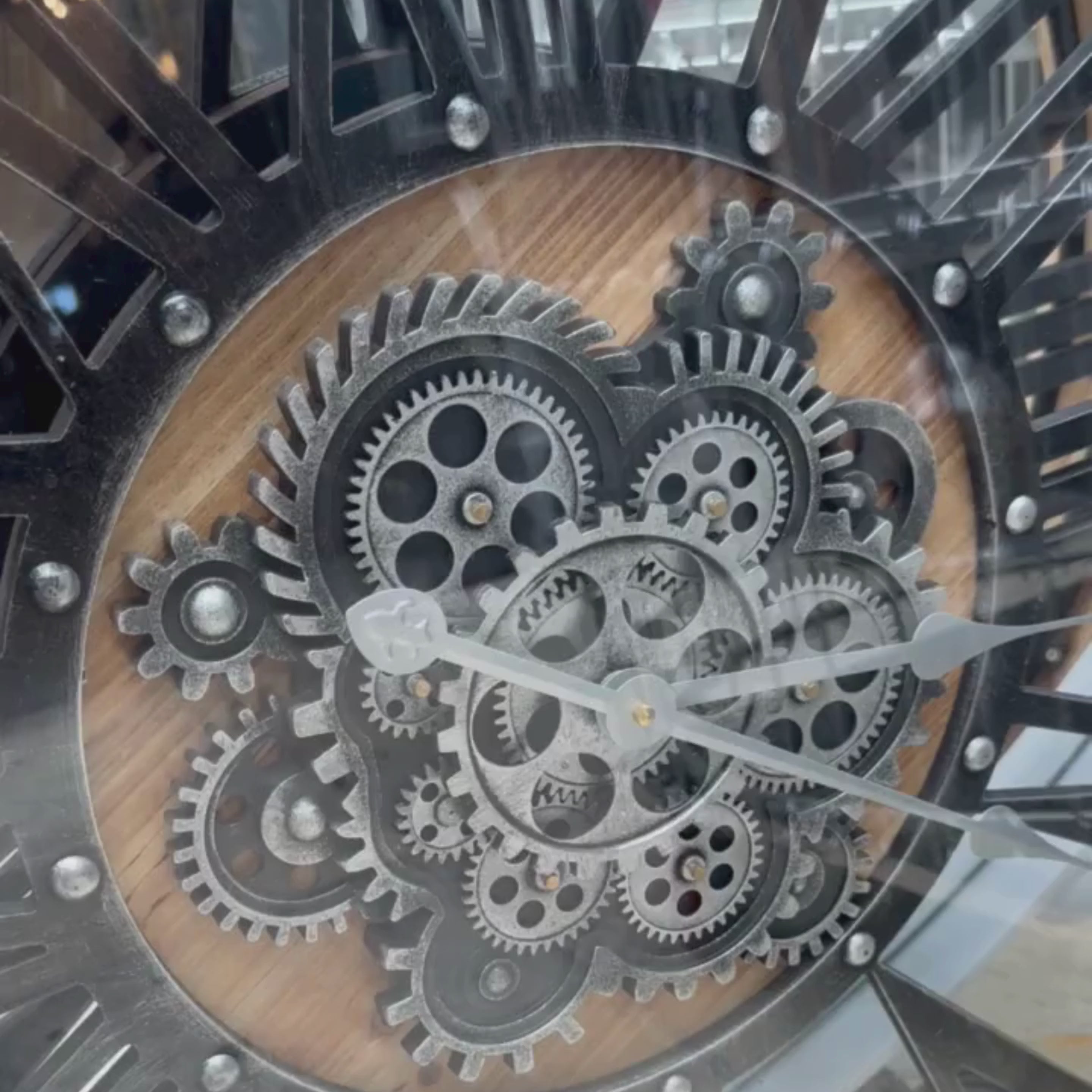Clean, modern, and full of charm, this wall clock combines solid wood with black and silver metal for a contemporary yet timeless look. The exposed mechanism reveals moving cogs that power its slender silver hands, adding dynamic visual interest. With cut-out Roman numerals and an unpolished finish, it’s a stunning statement piece for any space.